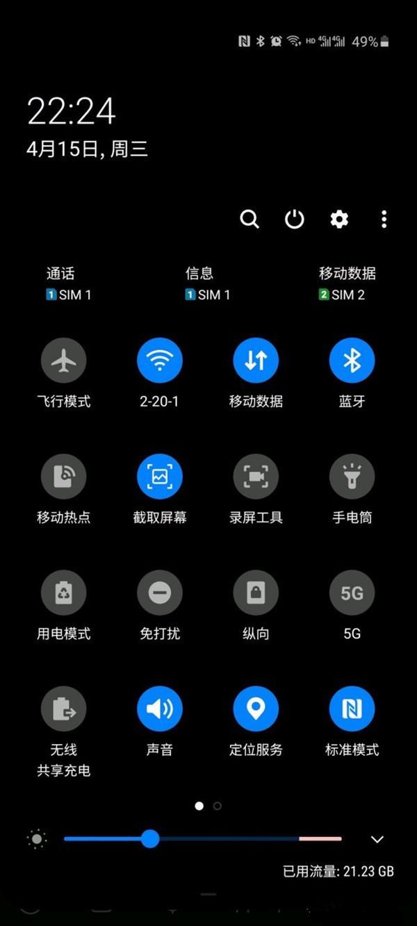 打开三星手机屏幕,下拉顶部的手机状态栏,点击【N】图标即可成功开启NFC功能。