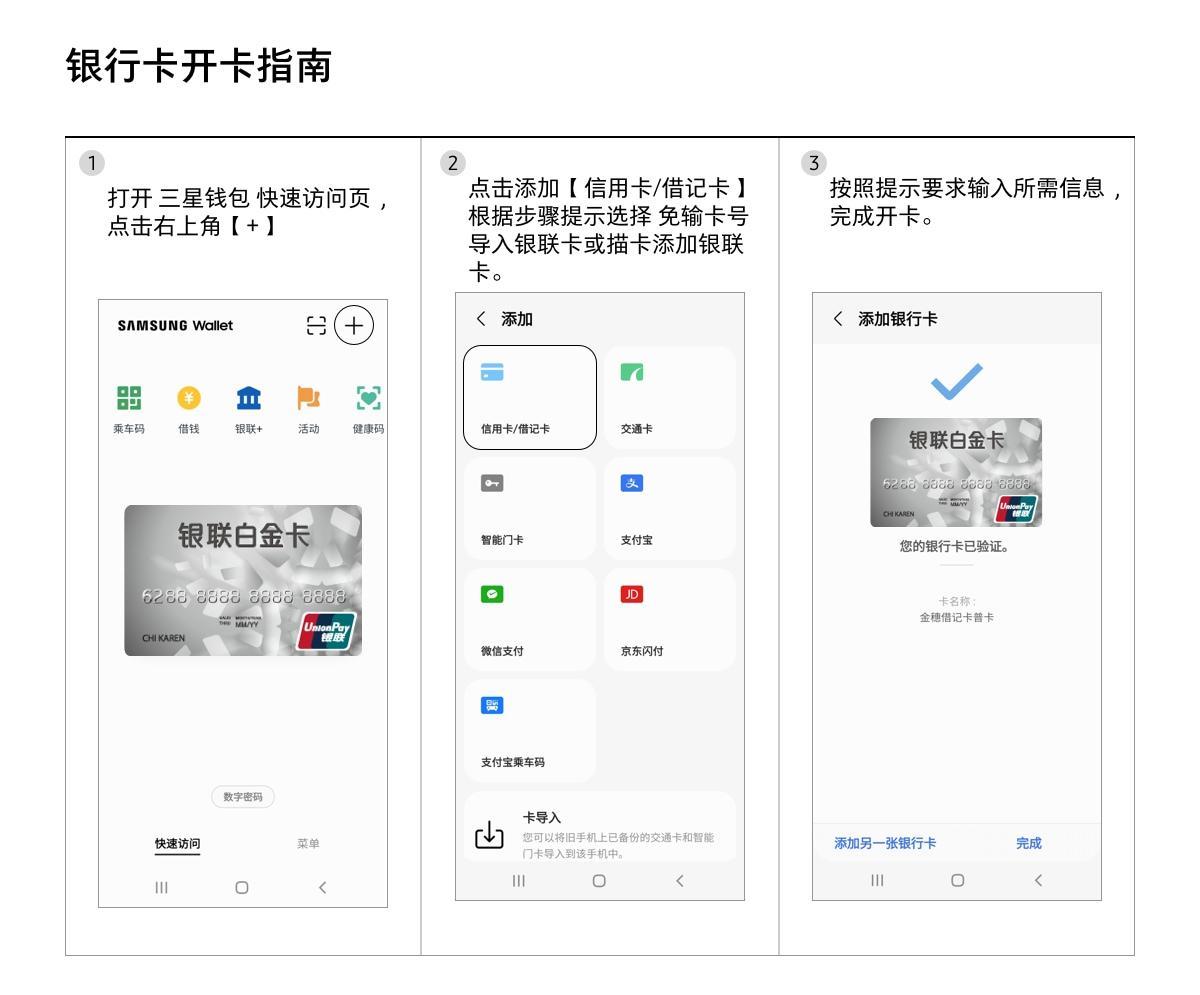 除了上述的门禁卡、交通卡,三星手机的NFC功能还能添加银行卡。