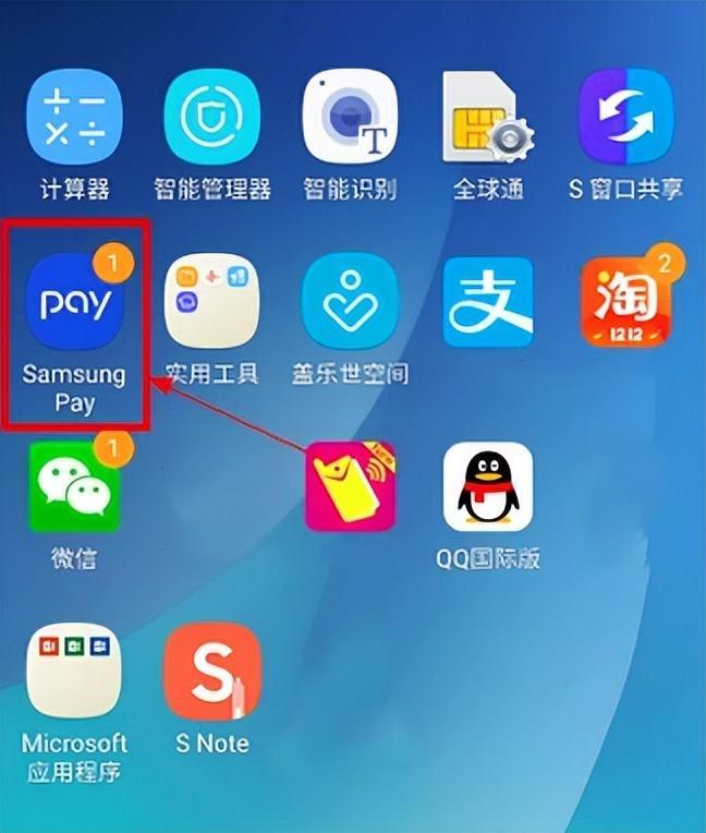 1、首先打开手机上的“samsungpay”软件,如下图所示: