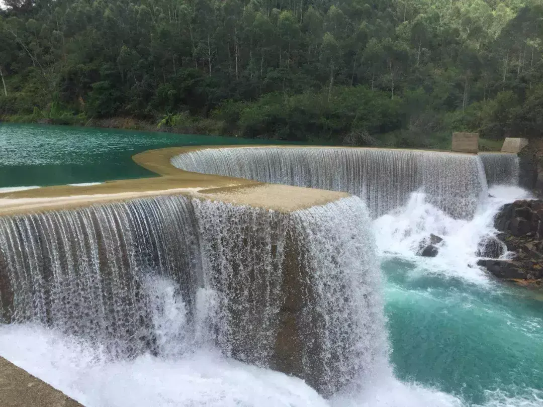 陂洋半月湾、坐落于陆丰市陂洋镇三岭村三板桥旁边、三十多年前由人工建成长约36米的拦水坝、用于三岭村周边农田灌溉。因弯形似半月而得名、它背依青山绿野、环抱碧海清波、镶嵌在青山碧水之间、犹如深邃夜空中的一弯新月。半月湾因为形状酷似一弯新月而得名。