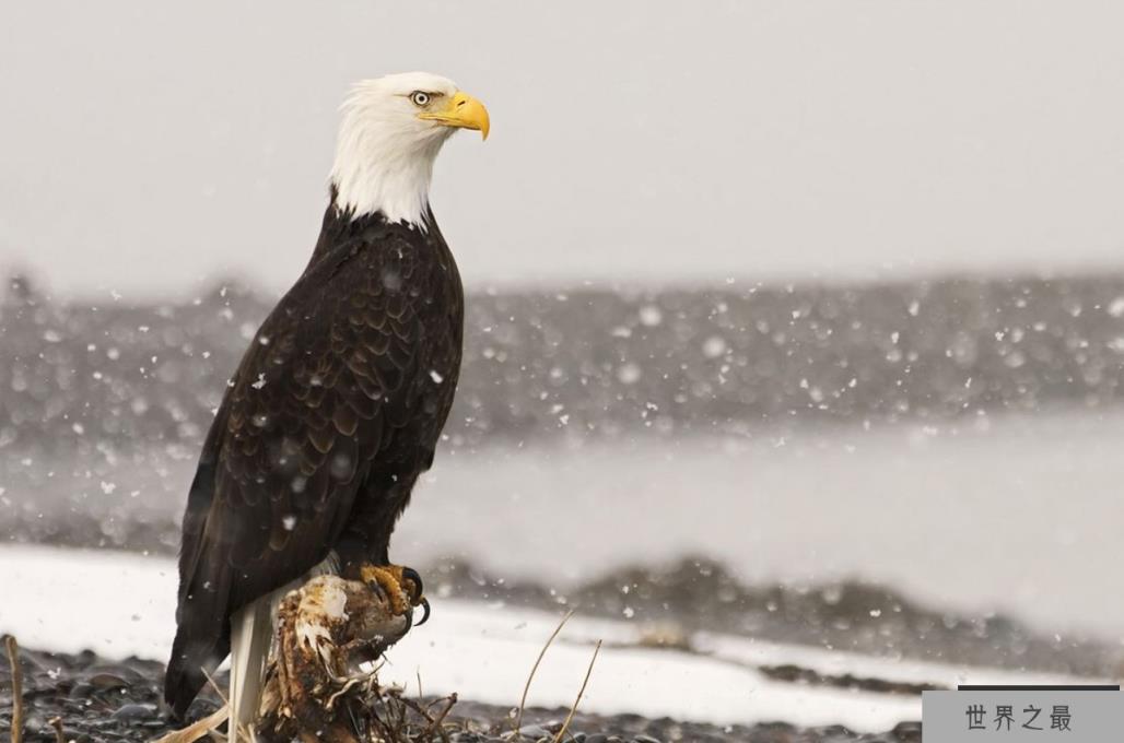 白头海雕又叫做美洲雕,是美国的国鸟,成年海雕体长可达1米,翼展2米多长,属于大型猛禽,白头海雕的外形十分雄壮优雅,它的羽毛是暗褐色的,但是它的头部是白色的,有一个颜色鲜艳的喙,白头海雕喜欢在海岸边觅食,它的嘴和爪子都十分锋利,而且还是钩曲的,所以攻击力特别强,同时白头海雕的性情凶猛,一旦招惹到它,白头海雕就会立刻发起攻击。