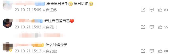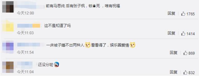 瞧这情况粉丝根本没有看开嘛,虽然前排评论已经恢复了彩虹屁、控评的一贯模式,粉丝也不像恋情刚曝光的时候质问 " 你疯了还是我疯了 " 那样破防,但整体上还是以劝分、不理解、不祝福、期待早日分手为主。