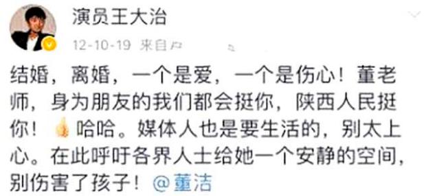 董洁王大治的瓜更久远、也更复杂一些,两个人当时各自都有家室,董洁和潘粤明那段婚姻一度更被观众视为 " 金童玉女 "。结果董洁不仅抢先造谣攻击潘粤明,已经被绯闻缠身的王大治还亲自下场力挺董洁,让几个人的关系更加一团糟。