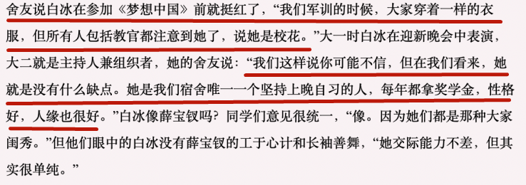 直到有位好心学姐,看不下去白冰就这样浪费才华,才逼得她走出舒适圈。