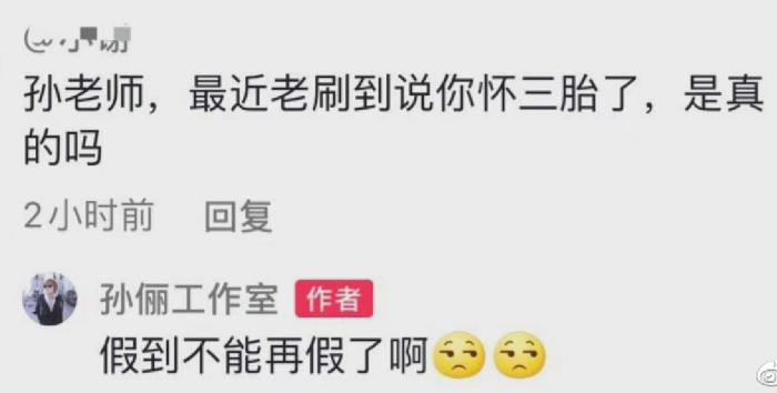 看到如此多影迷和粉丝扎堆式的询问,孙俪工作室迫于无奈只好挨个回复,辟谣怀孕三胎为谣言,希望公众不要信以为真,更不要以讹传讹。