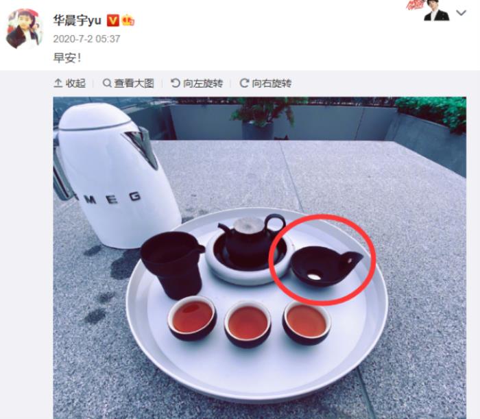 原来在节目上张碧晨晒出自己家中的茶具,还表示是自己家里常用的居家用品。茶具看上去很是精致,不过眼尖的网友们一眼就认出来了,这款茶具之前华晨宇也晒出过一套,并且颜色花纹都是一模一样的,疑似是同一套。