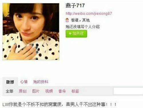 刘洲成2012年3月8日微博:“爱吃窝边草的傻叉,就该见一次打一次。”