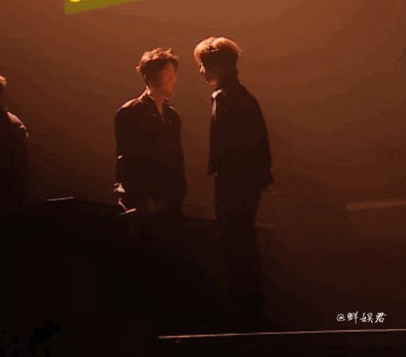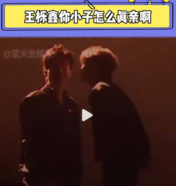 王栎鑫在表演的最后,真的亲了陈楚生一下,脸颊吻。