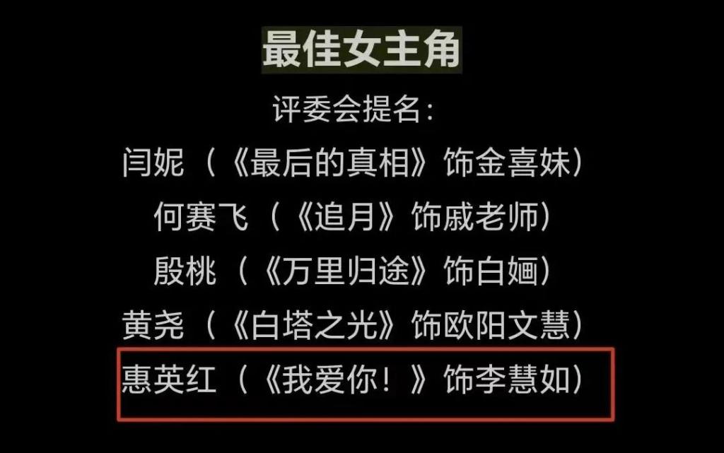最激动人心的还是最佳女主角,当初提名名单一出来,惠英红就成了今年金鸡奖的头号种子选手。
