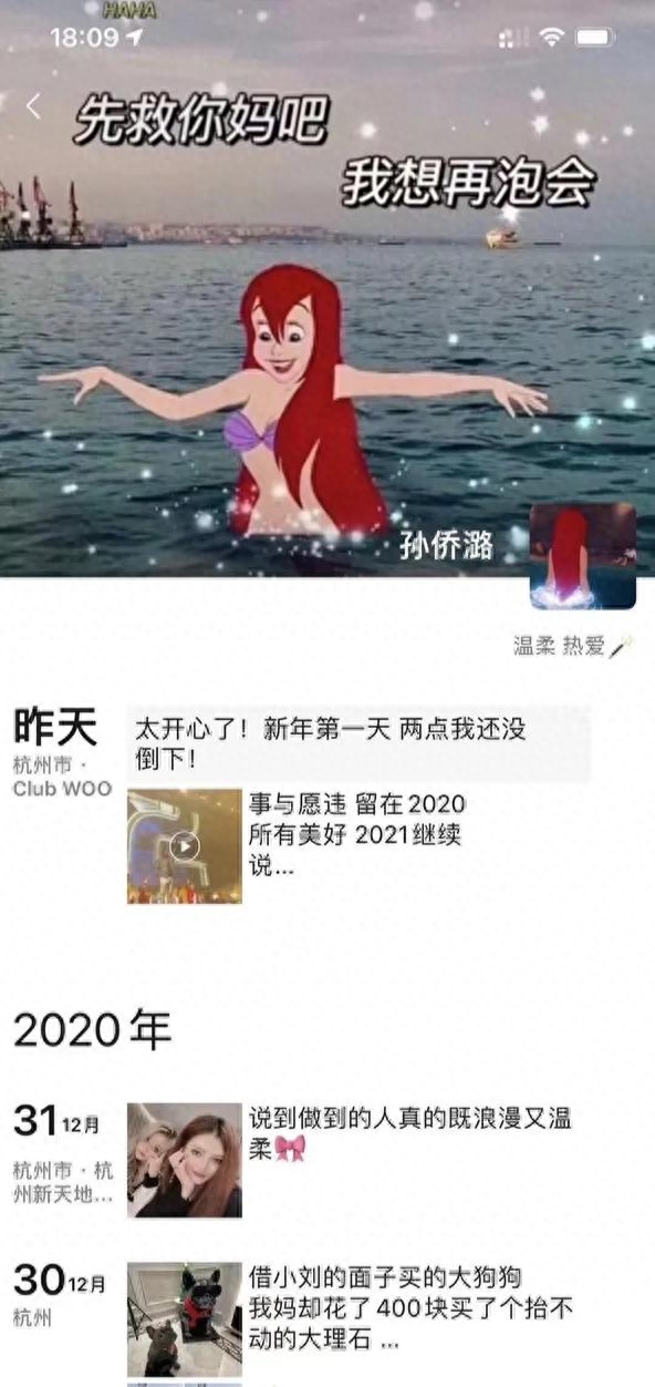 当晚,孙侨潞凌晨2点还发了一条朋友圈,称自己:“太开心了,新年第一天两点我还没倒下。”