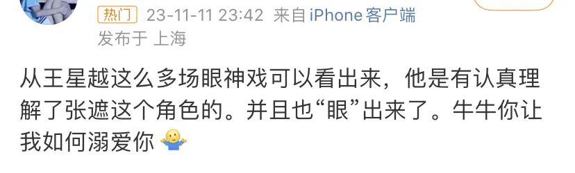看看隔壁张遮,同样表演发狠,王星越用的就是眼睛▼▼▼