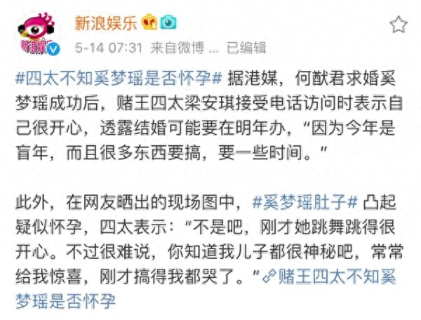 赌王四太回应奚梦瑶怀孕,称儿子喜欢给惊喜,话里暗示明显