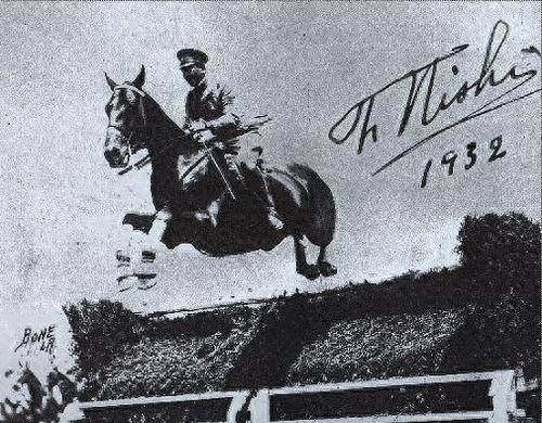 在1932年的第十届奥运会—洛杉矶奥运会上,骑兵中尉西竹一和爱马“天王星”参加了马术男子个人障碍赛。由于日本在1931年发动了“9.18事变”,入侵中国东北三省,此时的日本在国际上正遭受着广泛的舆论谴责,再加上美国当时排斥日本移民,美国国内爆发了空前的反日浪潮。但是,在场的美国观众被他的精彩表演所打动,纷纷高喊“Baron Nishi(西男爵)”,替他加油。最后登场的这对搭档靠着高超的技术,力压群雄,获得了金牌。这是日本在奥运会上第一次获得马术项目的金牌,也是迄今为止日本在奥运会马术项目上获得的唯一一块金牌。在跨越最后一道障碍时,爱马不经指示自行横曲后足越过障碍物,在接受采访时,西竹一兴奋地说“We won!”。在这里之所以使用了“We”而不是“I”,是因为他把爱马“天王星”看成了真正的搭档,做到了人马合一。