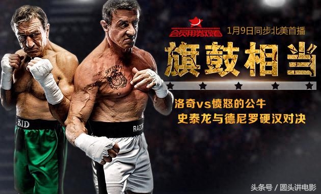 当影史上知名的拳击电影《洛基》与《愤怒的公牛》两位主角相遇,会擦出什么样的火花?西尔维斯特·史泰龙和罗伯特·德尼罗同台对决,是电影《旗鼓相当》的最大看点。尽管是“老人电影”,但影片在一开始的细节上倒还算紧跟时代,比如两个老拳手重逢的原因,不过很快影片就回到了老套的路数上来。片中不乏老硬汉的各种自嘲 。