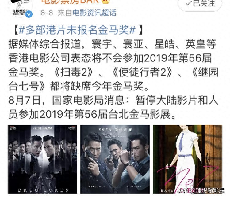 之前,在柏林电影节斩获男女双影帝的电影《地久天长》、入选欧洲三大电影节的华语影坛代表作品《一秒钟》、《南方车站的聚会》、《兰心大剧院》等大陆影片表示不参加金马奖;紧接着,刘德华、古天乐、梁家辉、张家辉、任达华、梁朝伟等人主演的港片也相继退出金马奖。