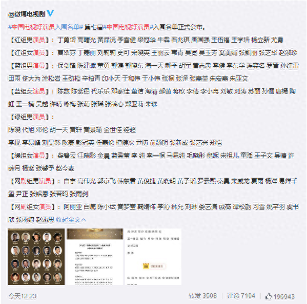 9月15日,中国电视剧好演员入围名单曝光,从晒出来的信息中可以看到,分为“红组、蓝组、绿组、网组”每一个组都代表着不同的层次,很多优秀的男女演员上榜,如:陈数、丁勇岱、高曙光、保剑锋、陈建斌、海清、陈紫函、董洁、邓家佳等演员。