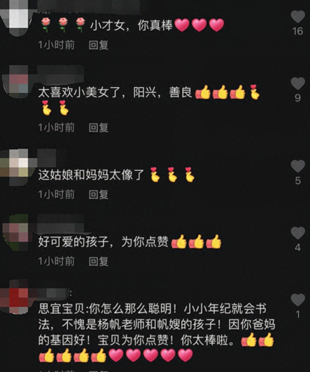 网友们看到杨帆女儿的新形象后,纷纷可能她很棒,并且特别可爱,和妈妈一样漂亮。