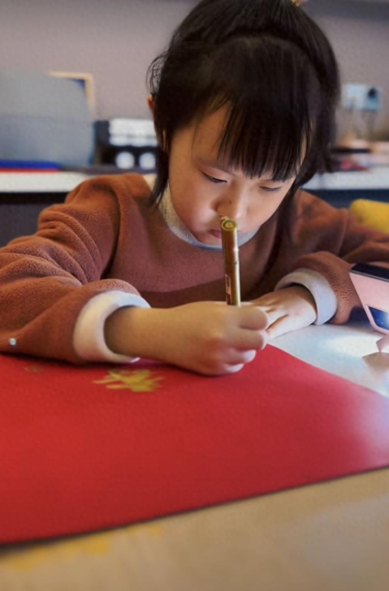 杨帆老婆晒女儿新形象,持笔端坐练字好认真,美貌基因遗传妈妈