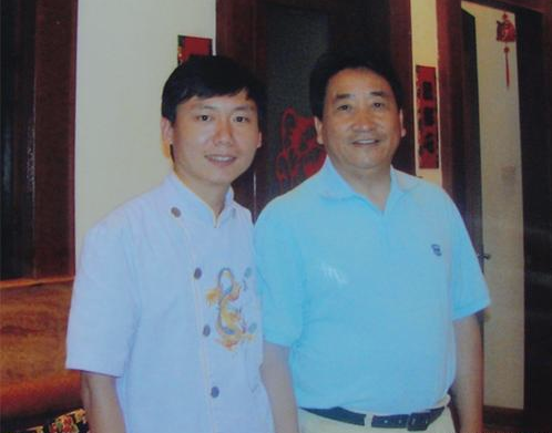2004年北京电视台春晚舞台上,父子同台,姜昆表演相声,姜河表演杂技空中转盘。