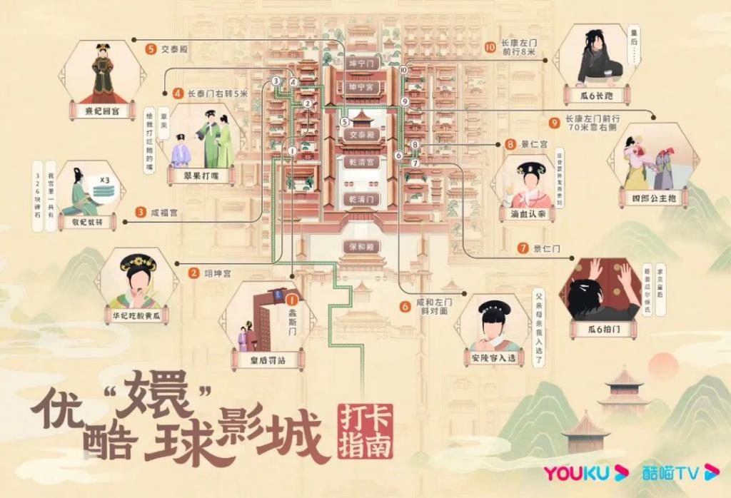 优酷不仅 11 月 17 日 -20 日《甄嬛传》12 周年期间限时 3 天免费看,还率先推出故宫 " ‘嬛’球影城 " 打卡指南。" ‘嬛’球影城 " 打卡指南是为了方便 " 甄学家 " 去故宫踩点,一笔一画精心制作,包括剧中 10 个高能名场面推荐打卡地和游览路线,让观众故宫打卡时再也不迷路。