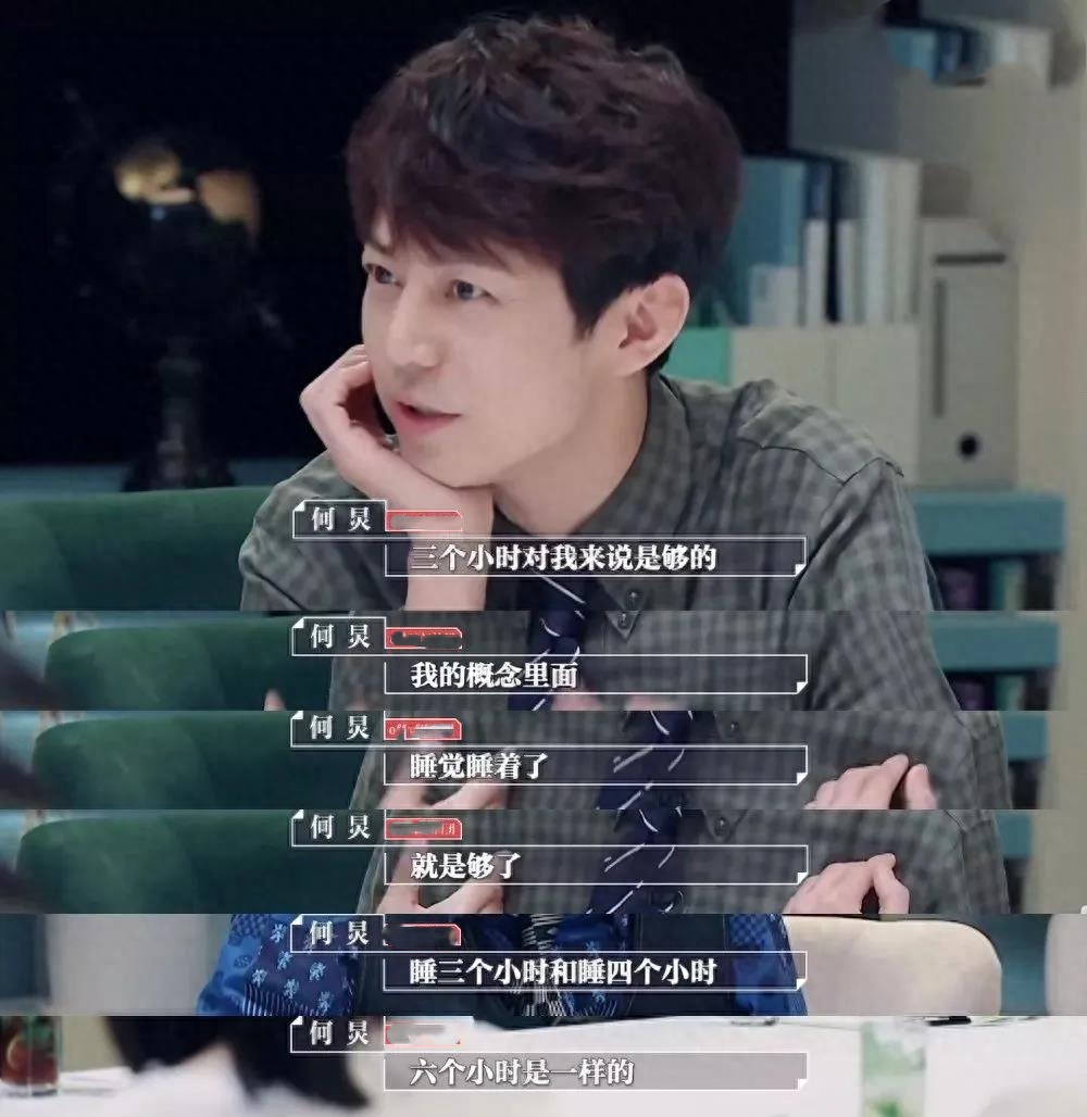 何炅曾经在节目里透露自己睡3个小时是够的,对他来说睡3个小时和睡4个、6个小时是一样的。