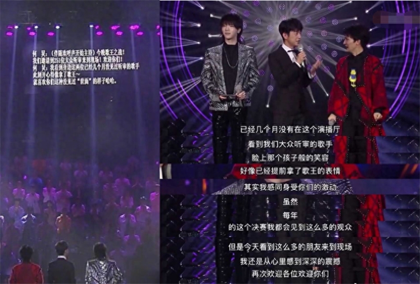 后来有相关知情人透露,由于此前的形势《歌手•当打之年》采取的都是无现场观众的云录制,到了总决赛迟迟没有定下来是继续延续这一形式呢,还是恢复正常邀请观众到现场演播厅参与录制。几番纠结下来,何炅据说在决赛直播的头一天晚上才拿到了台本。
