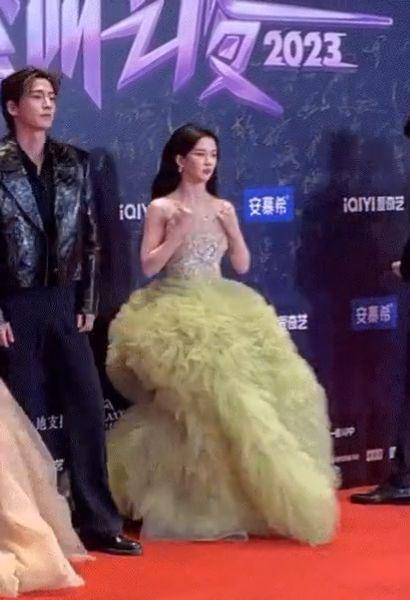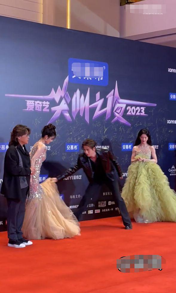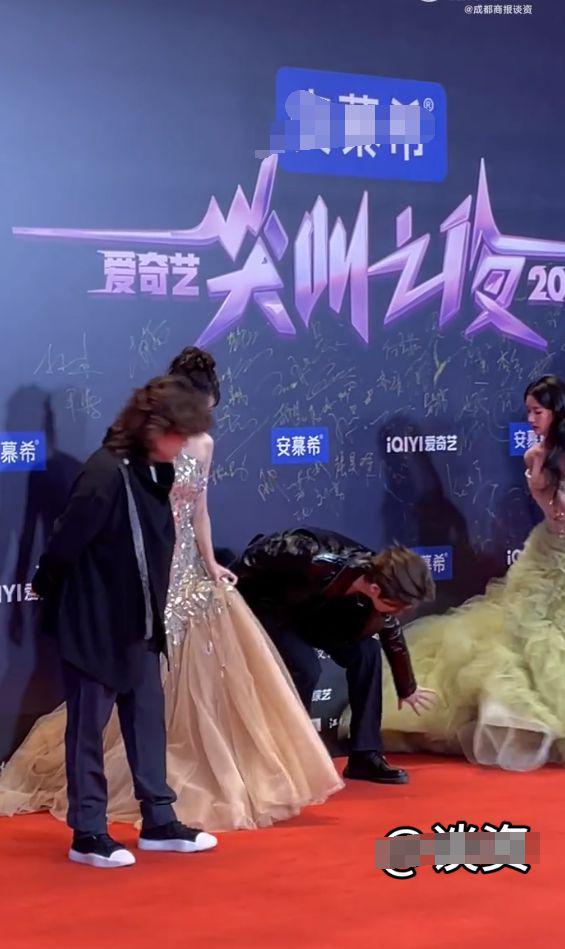 比张凌赫还尴尬的是林允和颖儿。这两位姐姐穿了同款大裙摆的礼服,上场时,这两人的裙摆却一直摆不开。