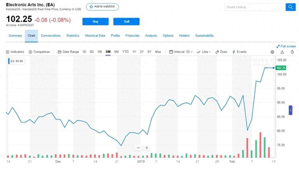 但谁也没料到的是,《Apex英雄》可以说是全方位“吊打”《圣歌》,对比《圣歌》的窘迫,《Apex英雄》可以说是硬生生地靠自己打出了一片天。在第一周里人气就呈现出爆炸式的增长,数据上升之快,远超《绝地求生:大逃杀》和《堡垒之夜》,甚至将EA的股价上升了8.5%,止住了因2018年财报不佳导致的下跌颓势。