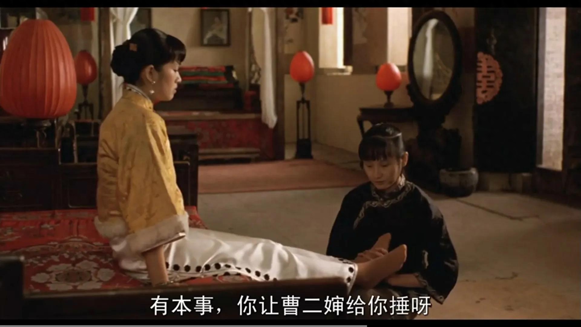 雁儿一方面不情不愿做着丫鬟,另一方面,她心中的太太梦从没有熄灭过,她偷偷地在自己的屋中点燃了红灯笼,每当晚上锤脚的声音响起,她也会垫起小凳子,把脚平放在凳子上,一脸陶醉地闭上眼睛,仿佛能够感受到那种奇妙的感觉。