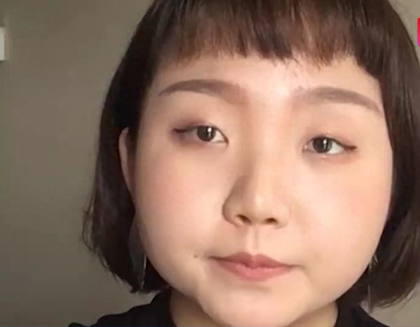 睫毛刷成苍蝇腿,刘海很短依旧卷起来。