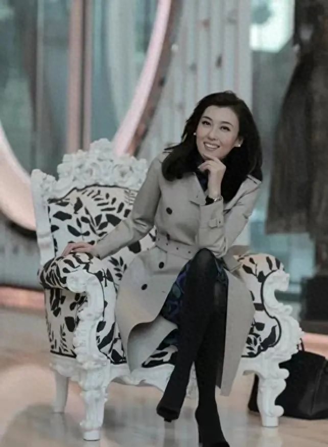 离开了工作,生活装打扮的李红也会展示出女人独有的性格和妩媚的一面,深色印花裙搭配黑色丝袜,多了女人的风情万种,搭配一件米色的长款风衣,多了一份大气与成熟。