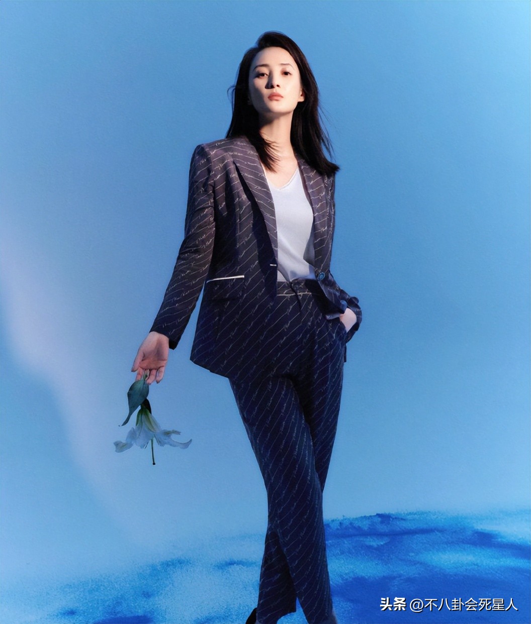 蒋勤勤近日为某杂志拍摄照片,照片中蒋勤勤一副酷帅十足的模样,身形保持得相当完美,纤瘦苗条,一点没走样,脸蛋