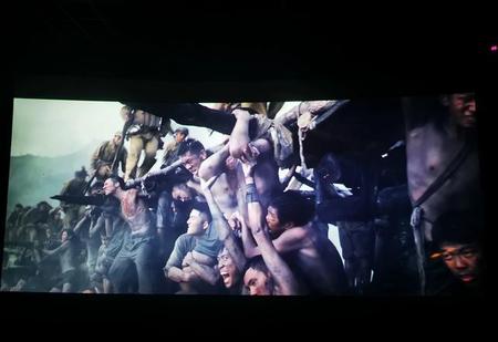 随后电影并没有给出志愿军浮桥阵地一片火海的场景,只是给出了一片废墟。