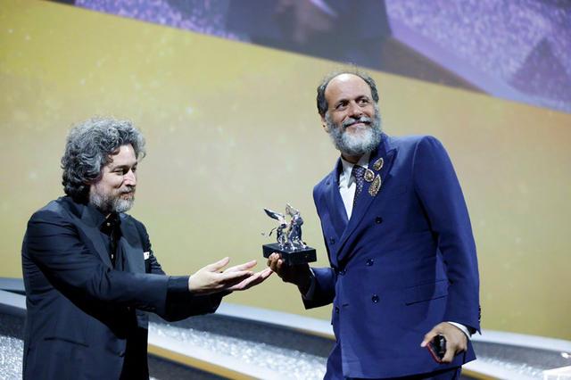 卢卡·瓜达尼诺(右)凭借《骨及所有》获最佳导演奖。