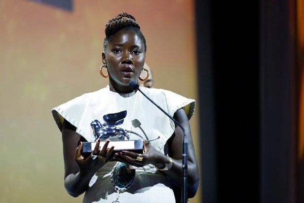 《圣奥梅尔》导演爱丽丝·迪欧普手捧银狮奖座。