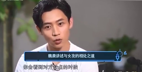 在一次节目采访中,被问到和女友的恋爱相处之道。魏晨的回答非常有借鉴,他说:“我喜欢的音乐我喜欢的运动,她都喜欢。这很难得。”补充:魏晨的女朋友也是音乐专业出身的,两人有相同的爱好真的非常之重要,这样两个人在日常的柴米油盐酱醋茶之外,才会有共同的话题,否则真的没话聊。