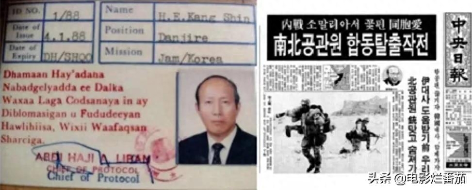 当时姜信圣带着6名工作人员试图搭乘专机离开摩加迪沙,他们在机场遇到了带着13名工作人员和家属的金勇洙。