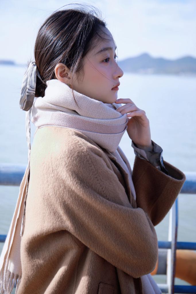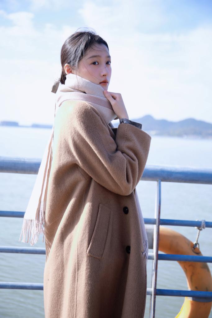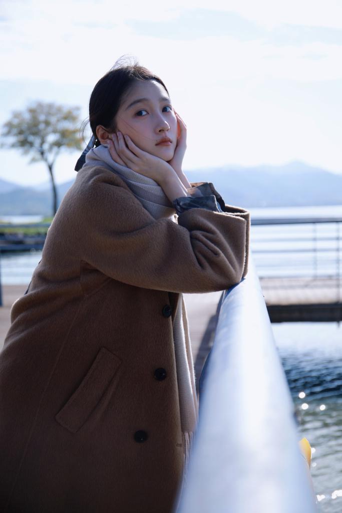关晓彤冬日写真释出 卡其色大衣造型温柔俏皮