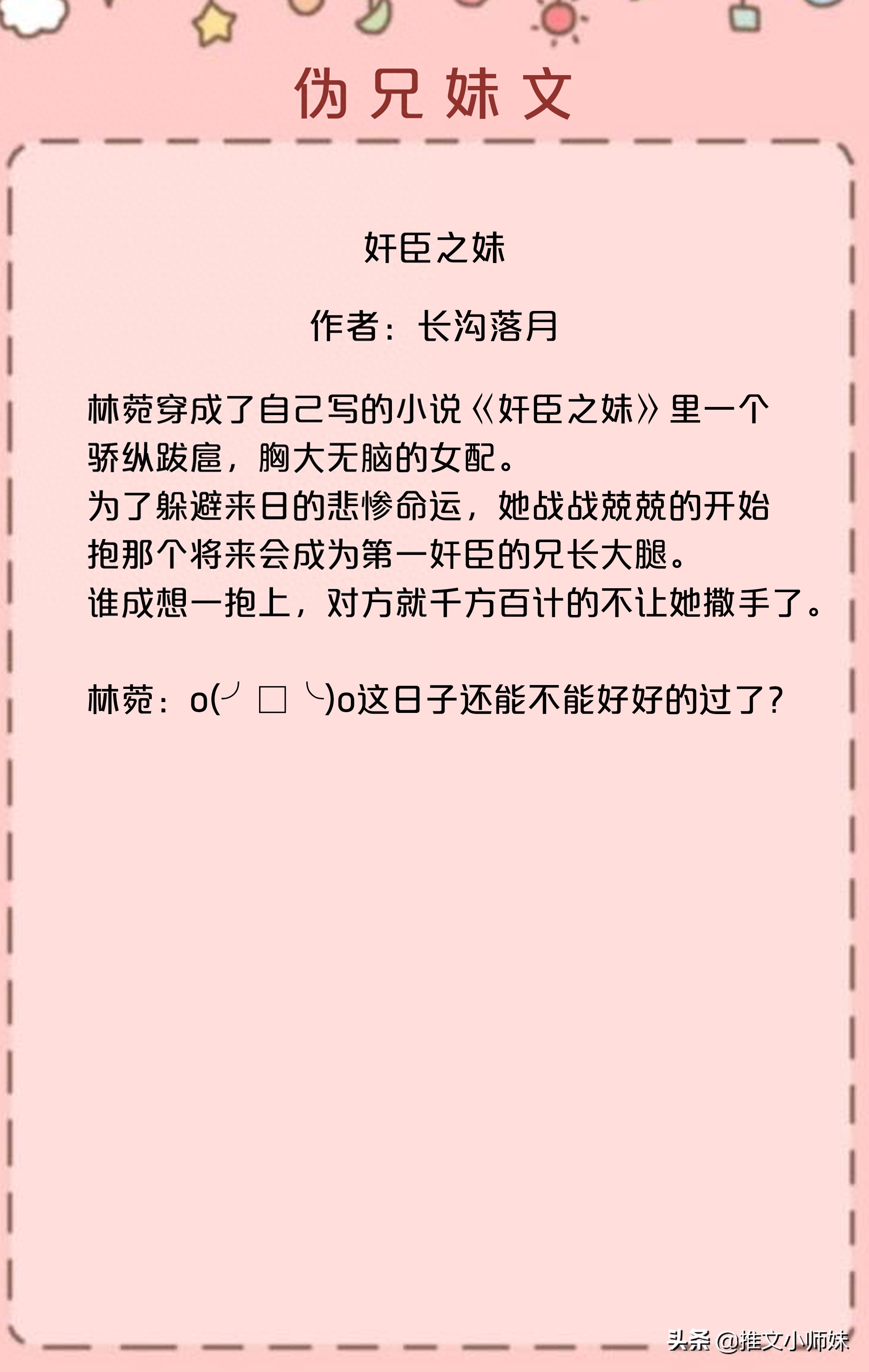 2.《奸臣之妹》 作者:长沟落月