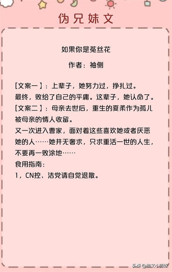 推文小师妹,每日推文,书荒关注我哦!