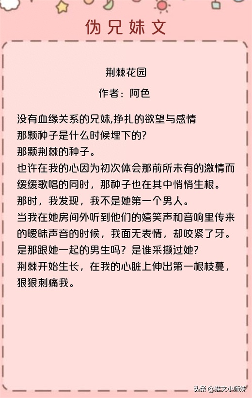 强推!伪兄妹文,《荆棘花园》《强极则辱》有肉有剧情,超带感