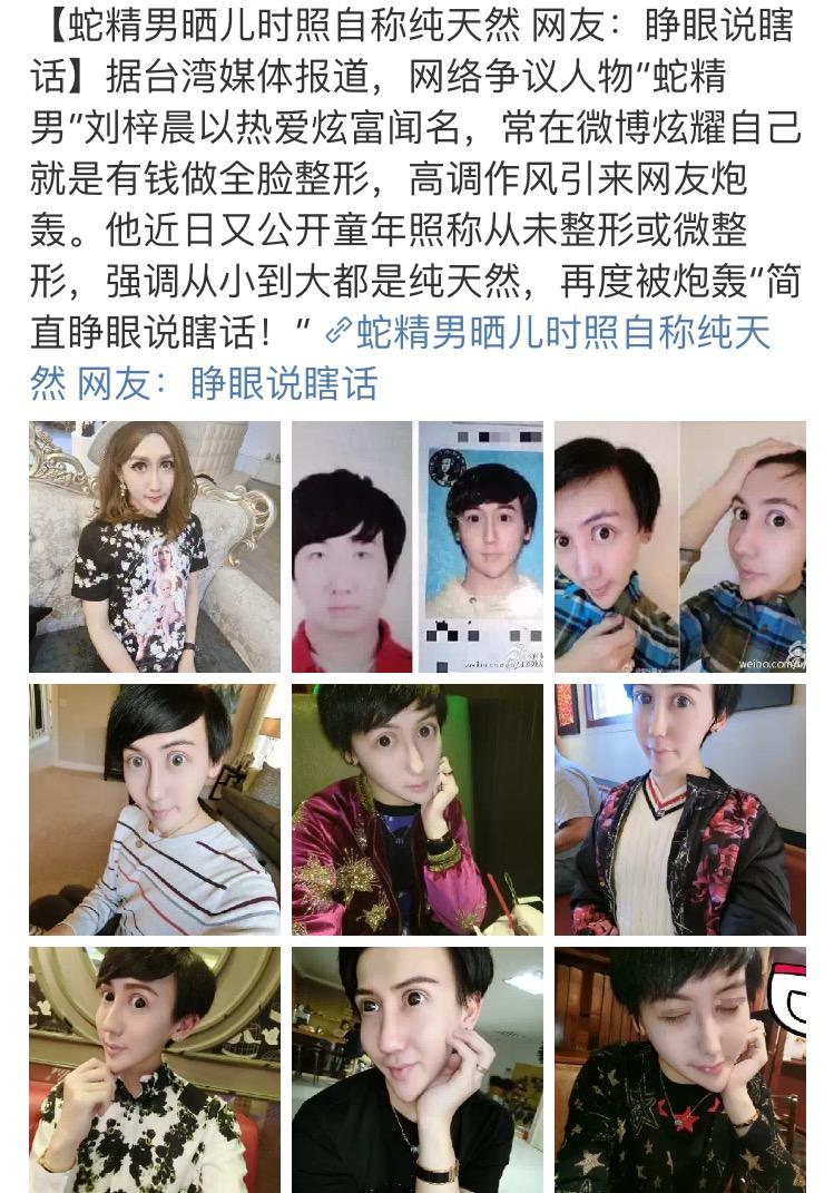 蛇精男刘梓晨在网上一直很活跃,其妈妈也是一朵很奇的葩。