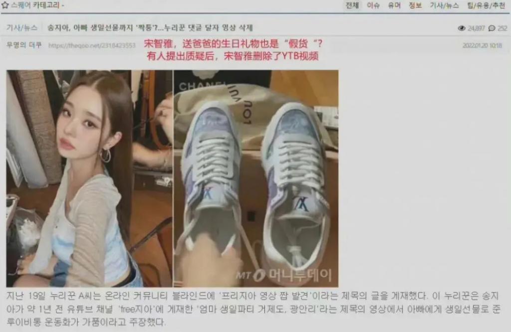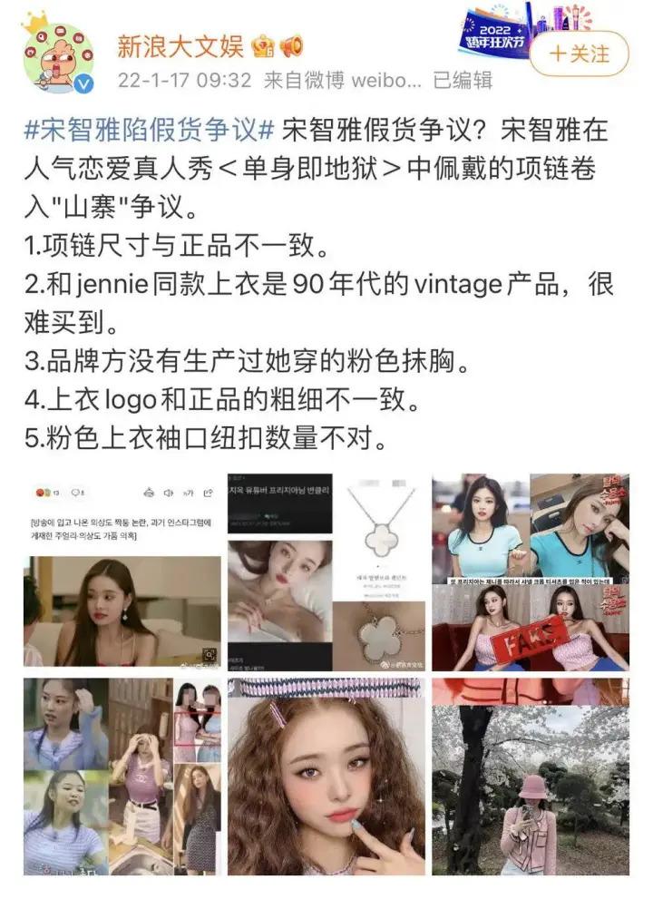 2022 年 1 月初,宋智雅被扒在节目中穿的 " 香奈儿针织短袖 " 是假货,和正版有着明显差异。
