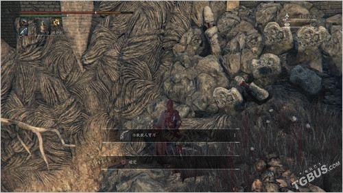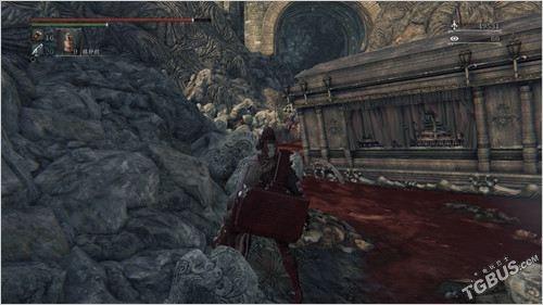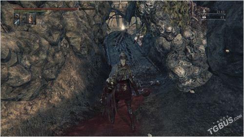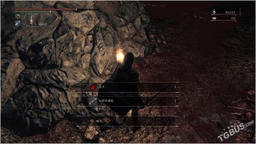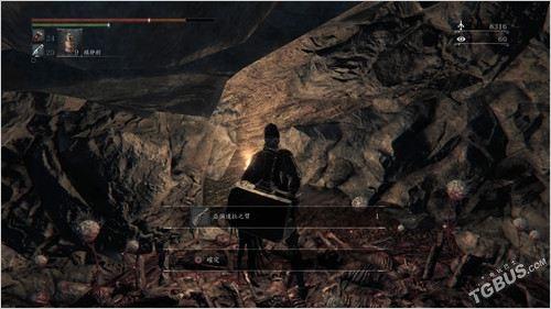 ≯在通道的尽头有一只咳血兽,最里面的发光点,是左手武器亚弥达拉之臂,这里我们可以选择击杀咳血兽,如果不想打,拿到武器后,之后按原路往回走,出洞即可;