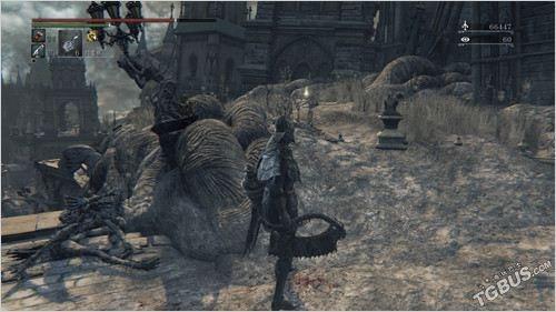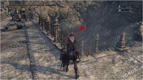 ≯之后从右侧拿巨型加农炮的敌人身后通过,进入建筑物后,左侧是第二个灯,点燃后从深入地下的通道下去,然后跳到左侧的坑道里,一直往左侧走,最深处可以捡到旋转锯刀,初始物理攻击95,本区域所有装备武器,已集齐,然后准备BOSS战;