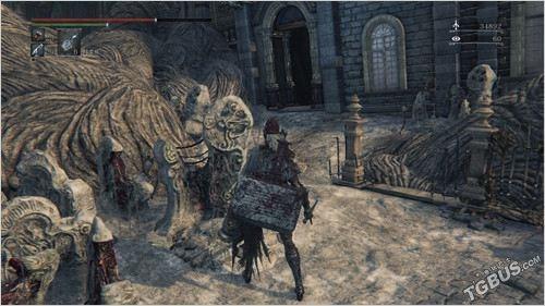 ≯然后沿着去大教堂的台阶前进,到大教堂门口前的阶梯时,我们会看见大教堂门口有两个猎人在敲门,先不要着急上去,等门开了之后,我们在上去,门里会出一个白衣杂兵,这个杂兵也有两个阶段,血量减少后,会进入第二阶段,第二阶段攻击力高,而且多数是范围攻击,不要贪刀,还是比较轻松的,解决后,进入大教堂,最深处的祭台旁(劳伦斯),调查取得关键道具眼球坠子;本区域所有可收集武器套装以集全,准备前往下一区域;