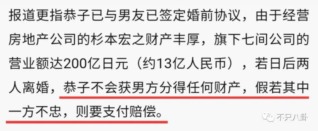 协议中规定,如果离婚,深田恭子将不会分得男方的任何财产;如若有一方在婚姻中不忠,那么就需要对另一方做出巨额赔偿。