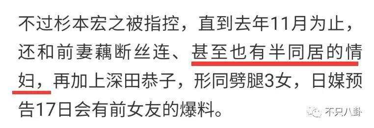 传闻称,杉本宏之在第二段婚姻中曾经有过出轨行为,导致婚姻只维持了 7 年,又再次以潦草分手而告终。