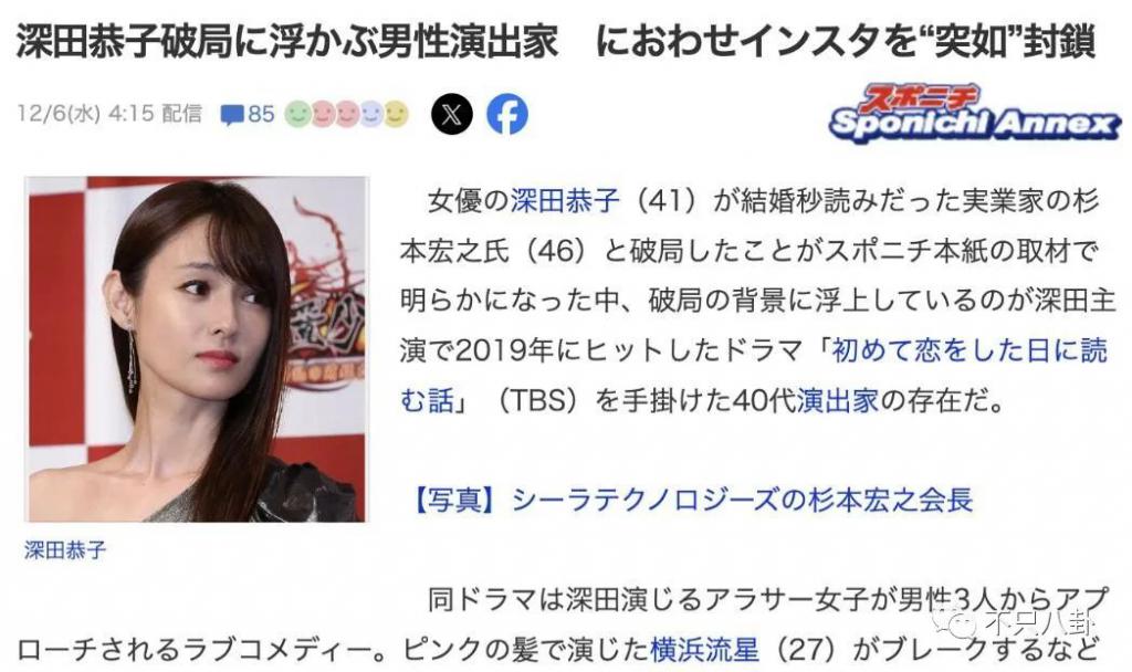 谁料一个月后,分手的消息猝不及防传来,日媒称深田恭子劈腿了 ……