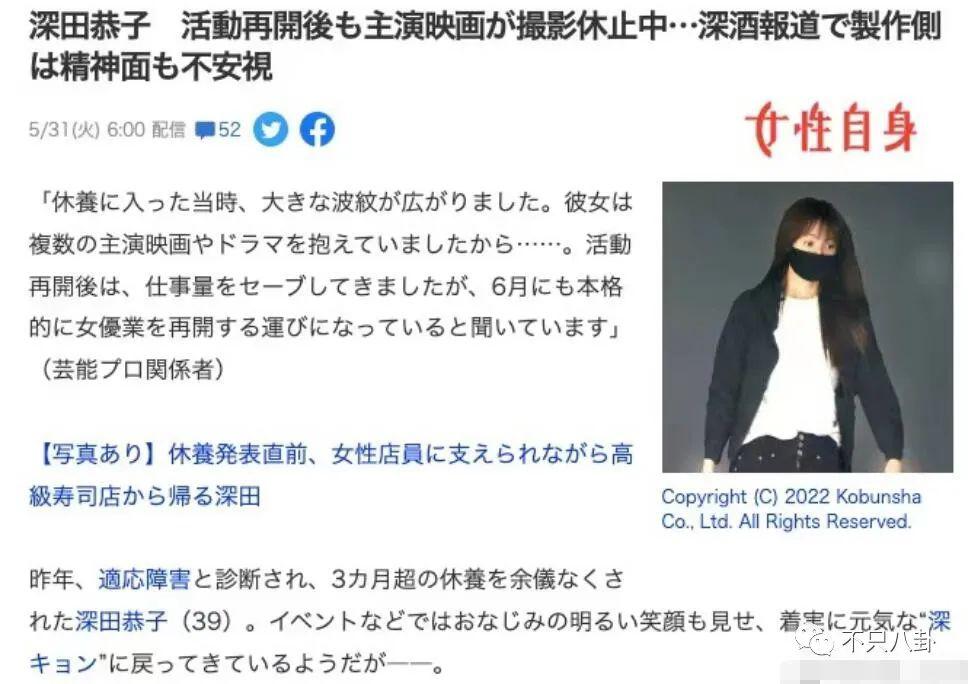 不仅如此,由于酗酒的问题,让制作方非常担心她的精神状态,深田恭子被剧组劝退,新片也暂停拍摄。
